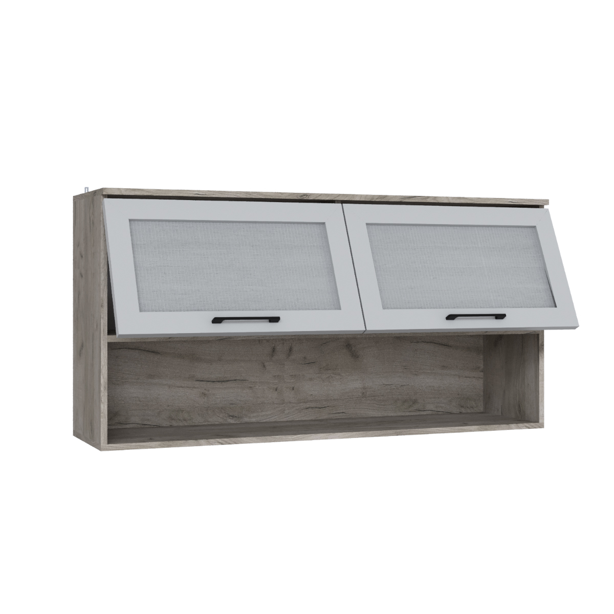 Материал фасада: рамочный профиль из МДФ в финишбумаге Светло-серой, вставка КМДФ в финиш-бумаге Светло-серой.