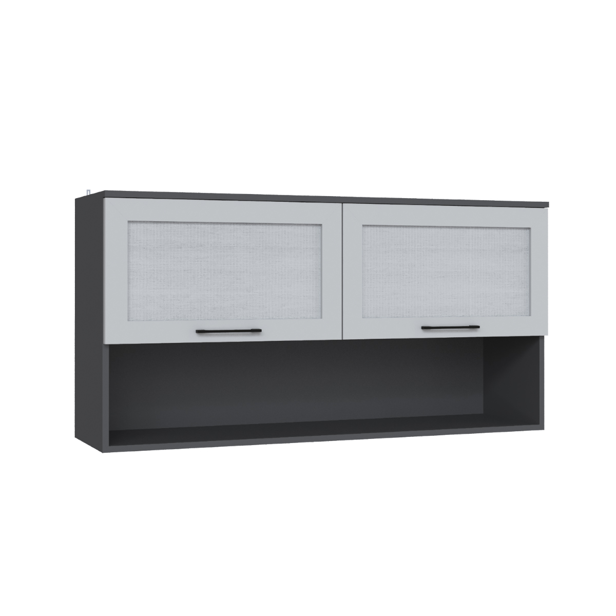 Материал фасада: рамочный профиль из МДФ в финишбумаге Светло-серой, вставка КМДФ в финиш-бумаге Светло-серой.