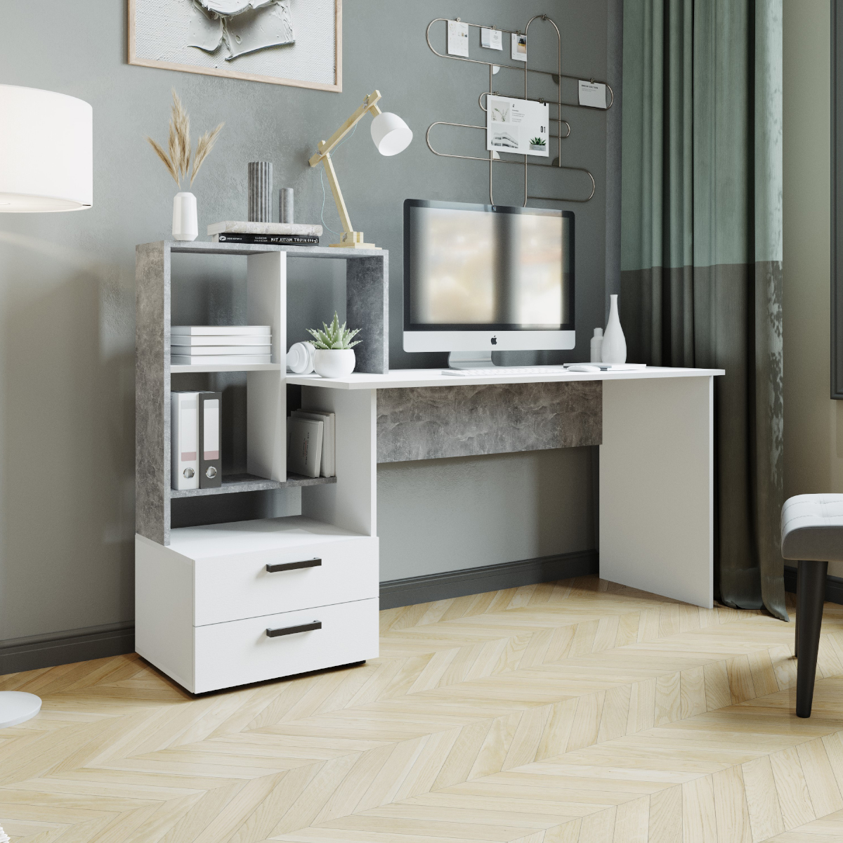 Компьютерный стол СКМ-5 белый фотоКомпьютерный стол СКМ-5 дуб крафт/золотой белый фотоКомпьютерный стол СКМ-5 дуб сонома/белый фотоКомпьютерный стол СКМ-5 ателье светлое/белый фотоКомпьютерный стол СКМ-5 графит серый/дуб крафт золотой фото