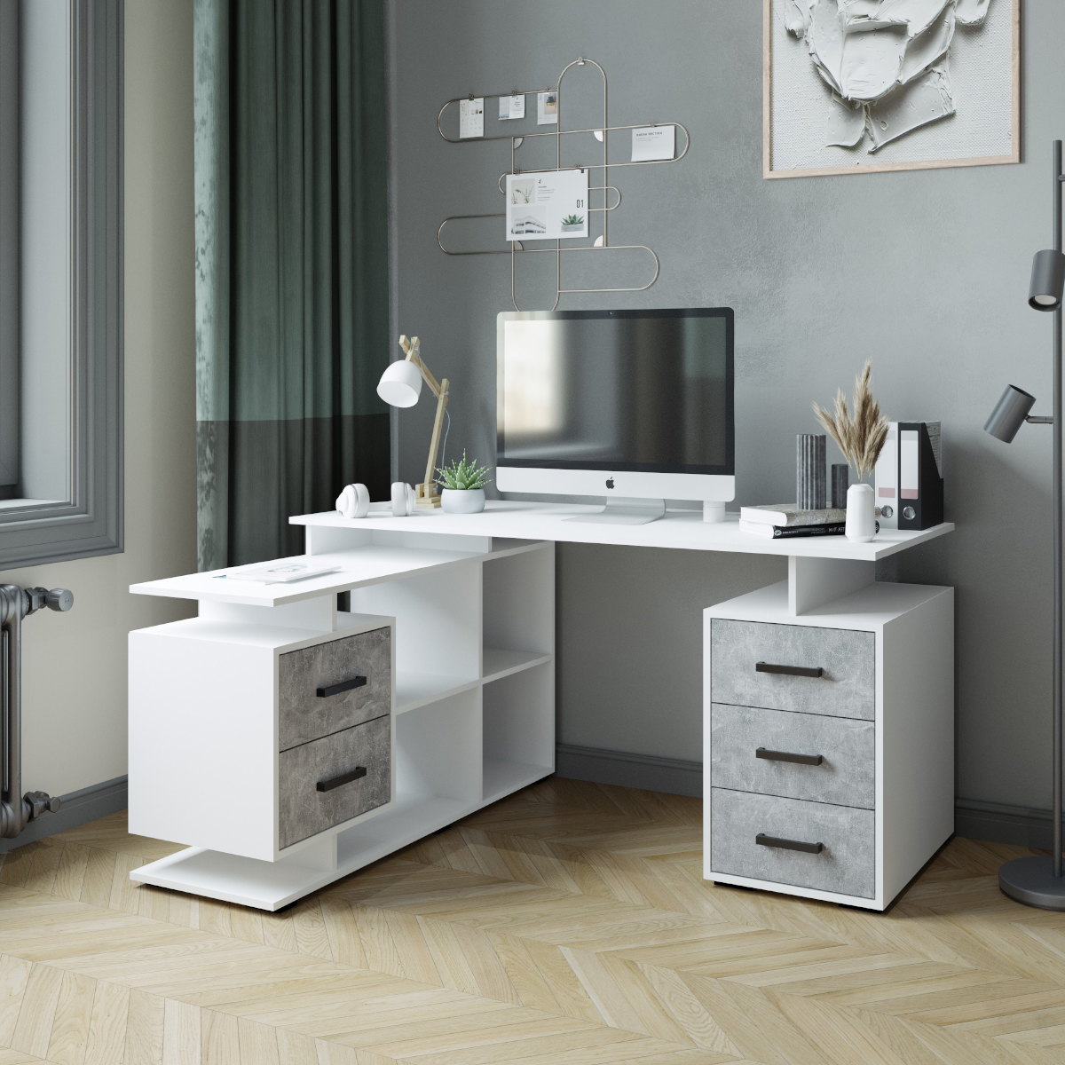Компьютерный стол СКМУ-3 белый/ателье светлое