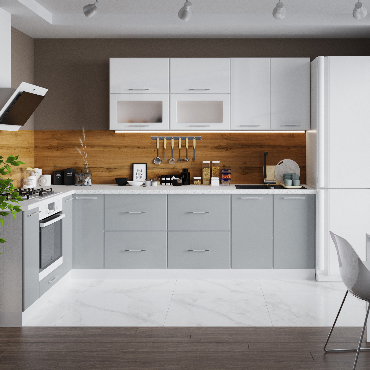 Материал фасада: МДФ, матовая пленка ПВХ Белый/Серый глянец