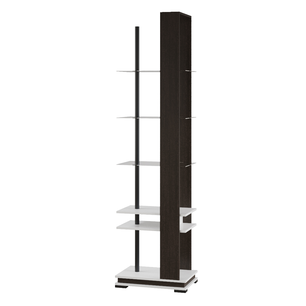 Модена МС-1 представляет собой высокий узкую конструкцию с открытыми ЛДСП и стеклянными полками, на которых можно красиво и удобно расположить свои любимые книги, сувениры фотографии или гаджеты, создавая уникальный интерьер в своем стиле.