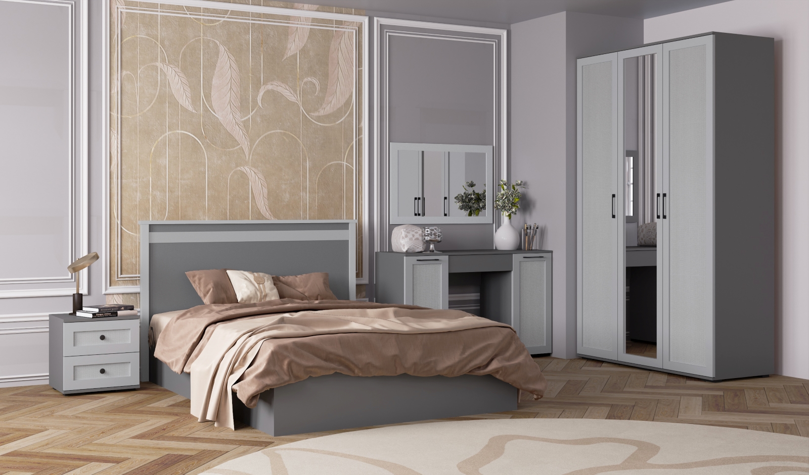 Спальня София Деко графит серый/светло-серый композиция 1