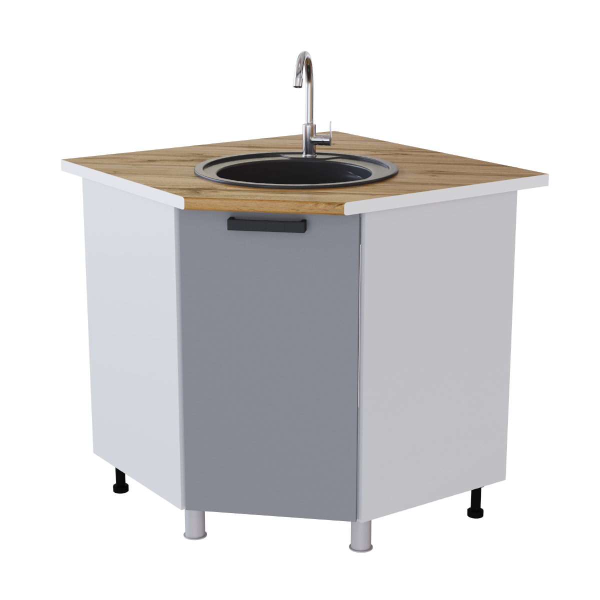 Угловой рабочий стол-мойка 850х850 УМ/корпус Белый/фасад Карбон Пепел/Ривьера