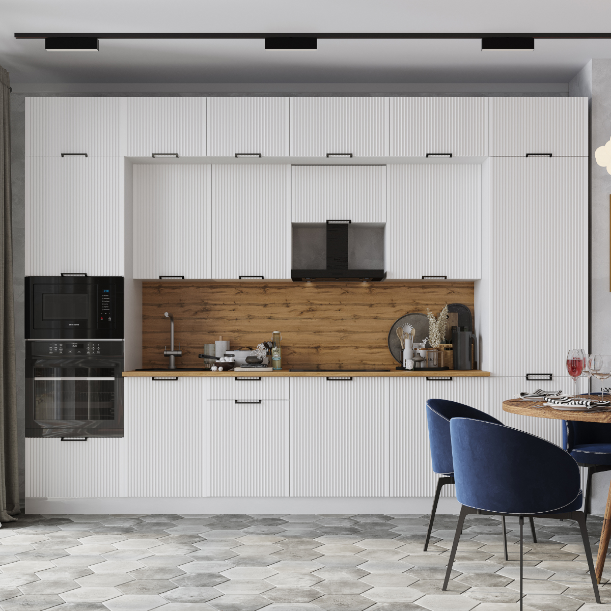 Цвет стеновой панели: Антарес, Дуб Вотан, Белый Мрамор, Мраморный берег