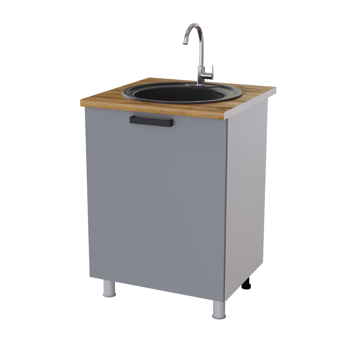 Рабочий стол с мойкой 600 6М с единым фасадом 1Ф6/корпус Белый/фасад Серый/Кампео