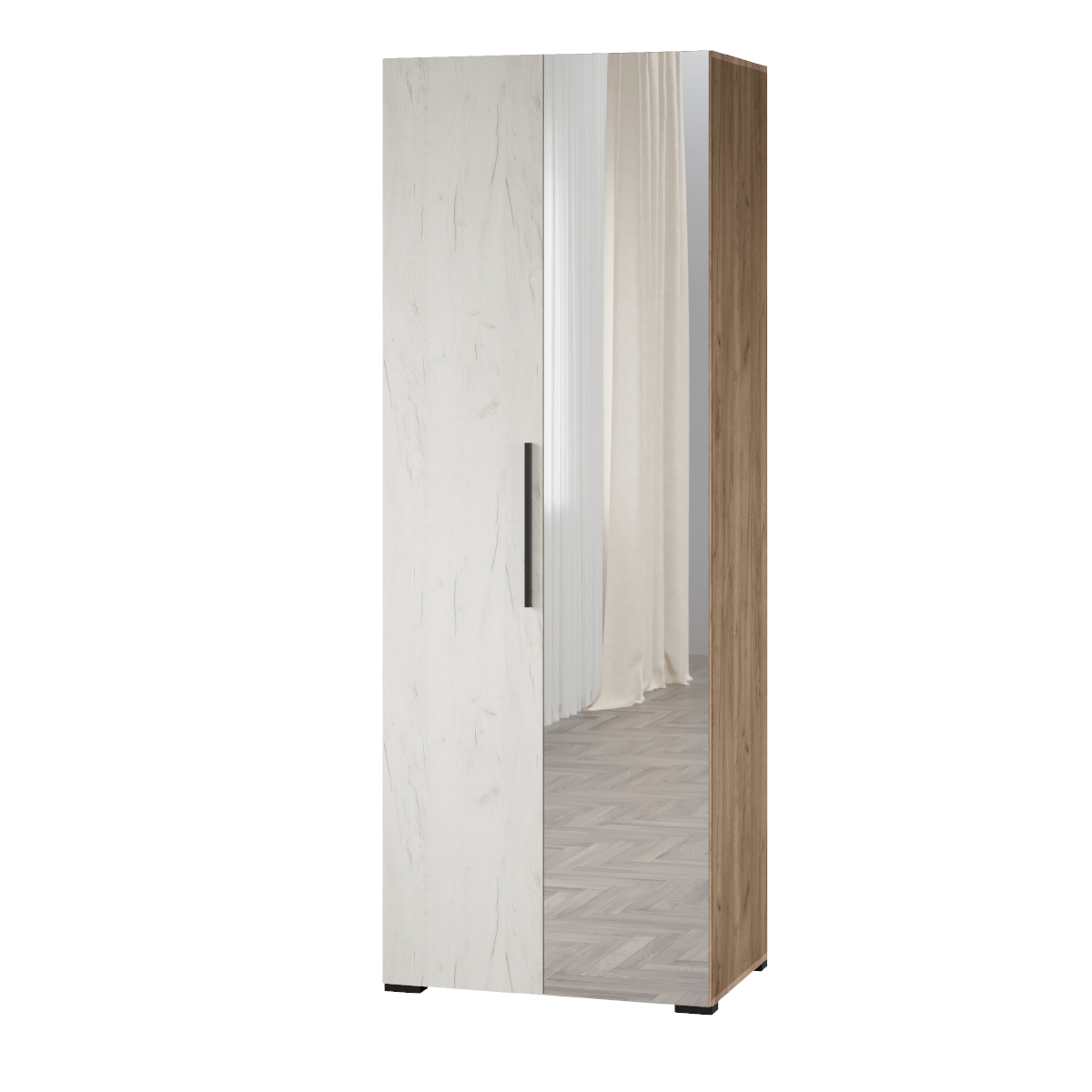 Шкаф 2-х створчатый с зеркалом Модена МШ-22 Дуб крафт табачный/Дуб крафт белый
