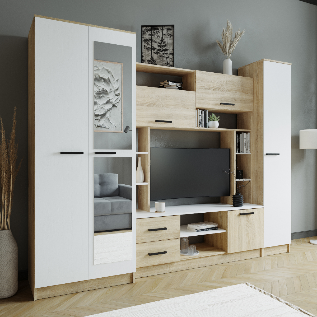 Гостиная Соло Дуб сонома/БелыйГабариты (В×Ш×Г) 210 × 270 × 50 см