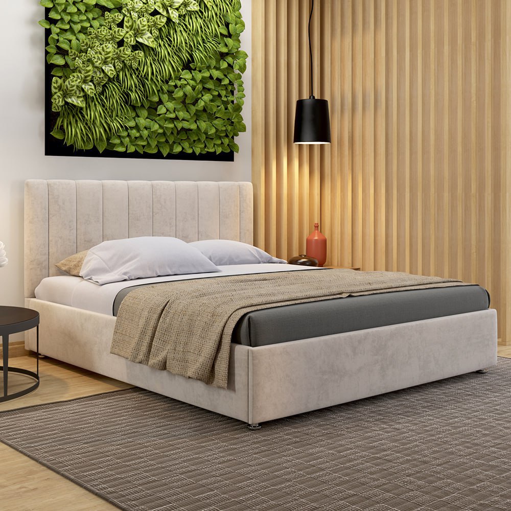 Двуспальная кровать Жардин НОВА благодаря мягкой обивке и высокому изголовью с декорацией вертикальными линиями обладает изысканным внешним видом. Она способна задать тон интерьеру спальной комнаты и станет не только эффектным дизайнерским решением, но и конструктивно продуманным предметом мебели..