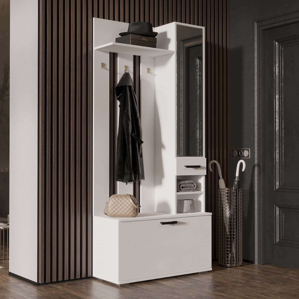 Вешалка с зеркалом Ника ВЗ910 Белый гладкий