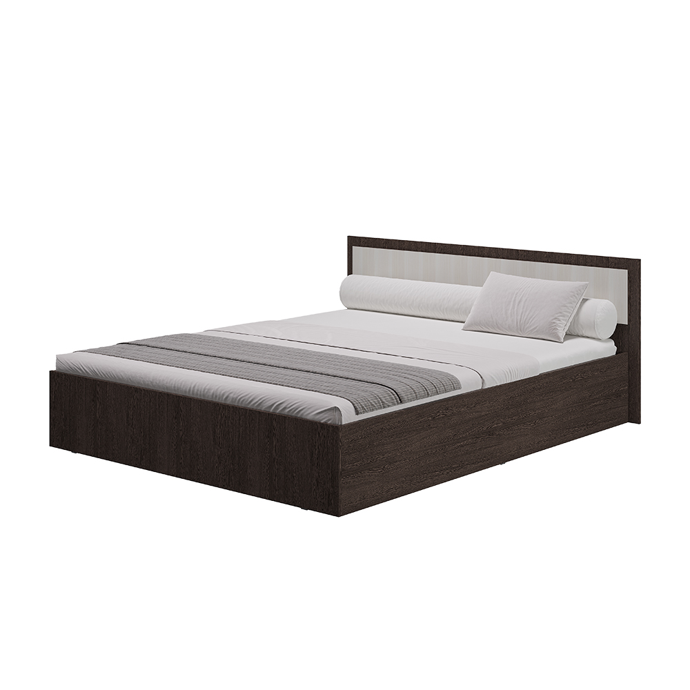 Двуспальная кровать "Фиеста" выполнена из высококачественной ЛДСП в цвете "венге". Изголовье имеет вставку светлого цвета "лоредо". У кровати отсутствуют ножки, это избавит вас от скопления пыли под ней.