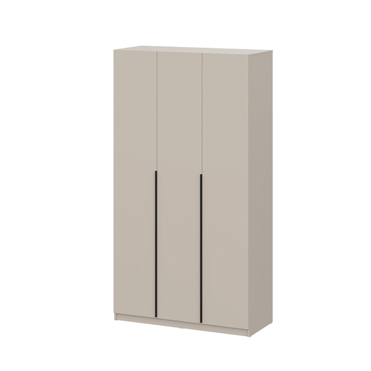 Шкаф: 3 распашных створки, 2 секции : в левой секции расположены 4 полки (3 полки съемные). В правой более широкой секции располагается штанга и вязка над штангой.